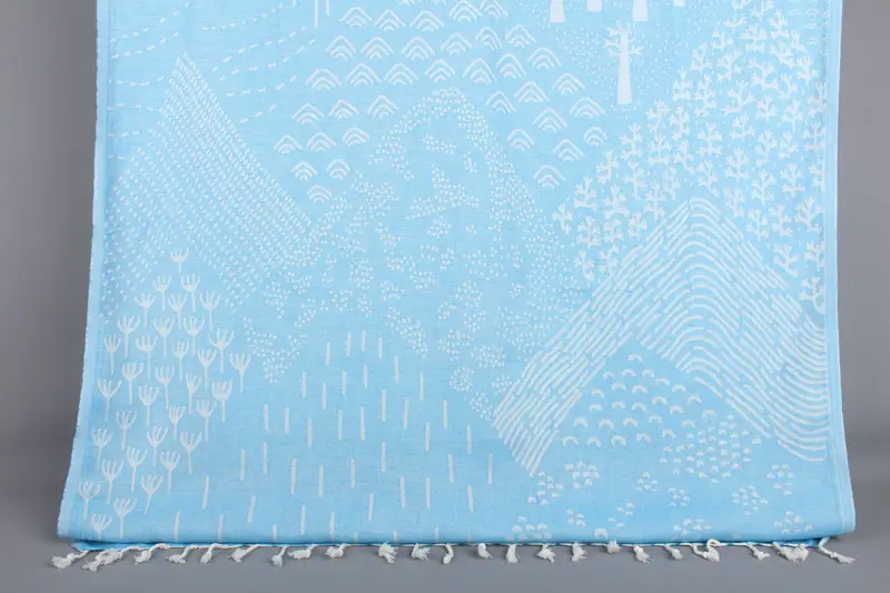 Turkuaz Pamuklu Havlu Dağ Tasarım Banyo Havlusu, 40x67 İnç