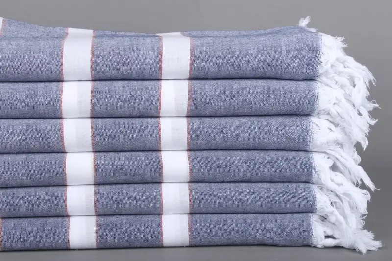 Plaj Havlusu Monogramlı Türk Pamuğu Lacivert-Kırmızı Çizgili, 40x71 İnç