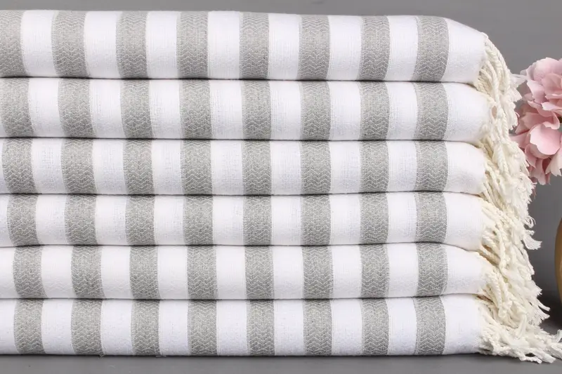 Organik Açık Gri Çizgili Türk Plaj Havlusu, 36x71 İnç