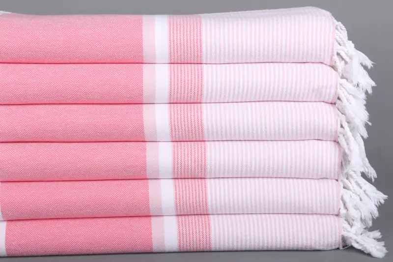 Monogramlı Plaj Havlusu Pembe-Fuşya Pamuk Çizgili, 40x67 İnç