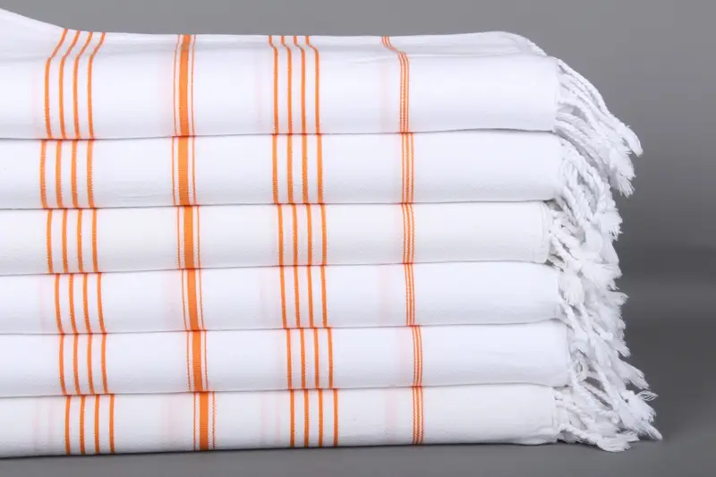 Türk Plaj Havlusu Çizgili Pamuk, Turuncu Bej, 40x71 İnç