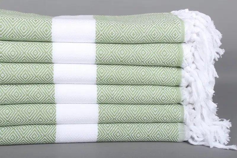 Diamond Havlu Kişiye Özel Plaj Havlusu Açık Haki Yeşil, 40x71 İnç