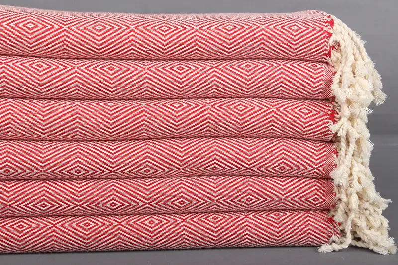 Kişiye Özel Türk Pamuk Havlu Kırmızı Bej Monogramlı, 40x74 İnç