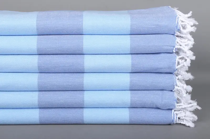 Açık Mavi-Sax Mavi Pamuklu Havlu Çizgili, 40x71 İnç