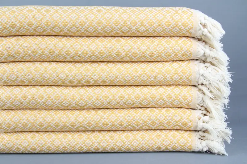 Türk Plaj Havlusu Hardal Elmas İşlemeli Organik Pamuk, 40x71 İnç