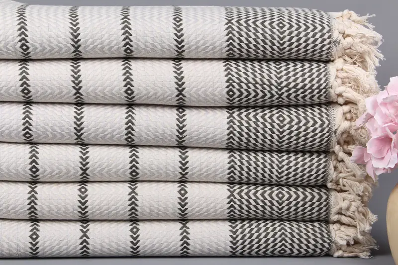 Türk Hamam Havlusu Plaj Koyu Yeşil-Gri Elmas Çizgili, 40x79 İnç