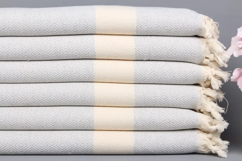 Kişiye Özel El Havlusu Organik Pamuk Açık Gri Diamond, 20x36 İnç