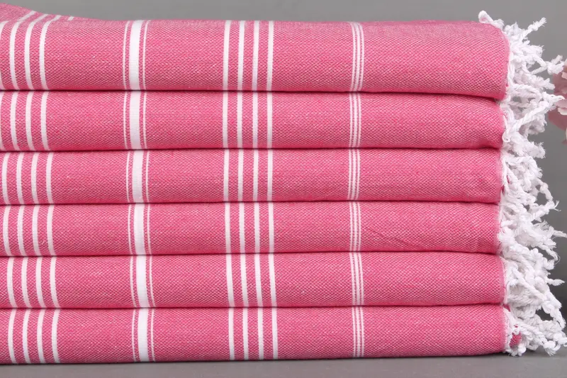 Türk Plaj Havlusu Organik Pamuk Fuşya Çizgili, 40x71 İnç