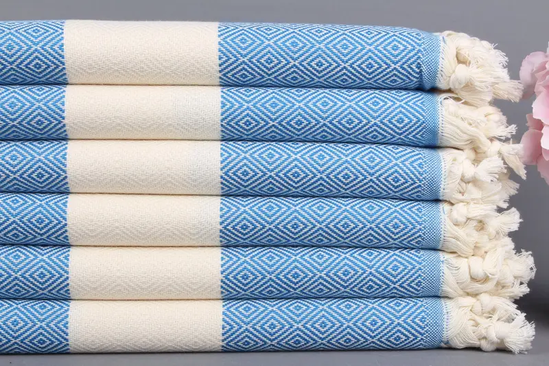Organik Türk Banyo Havlusu Açık Mavi Diamond Peştemal, 40x71 İnç