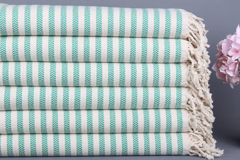 Türk Plaj Havlusu Organik Pamuk Koyu Yeşil Chevron, 40x71 İnç