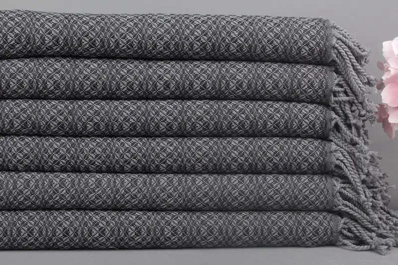 Türk Banyo Havlusu Monogram Plaj Havlusu Siyah Bej 38x71 İnç