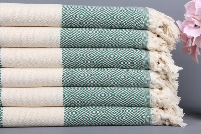 Organik Plaj Havlusu Türk Haki Yeşil Peştemal, 40x71 İnç
