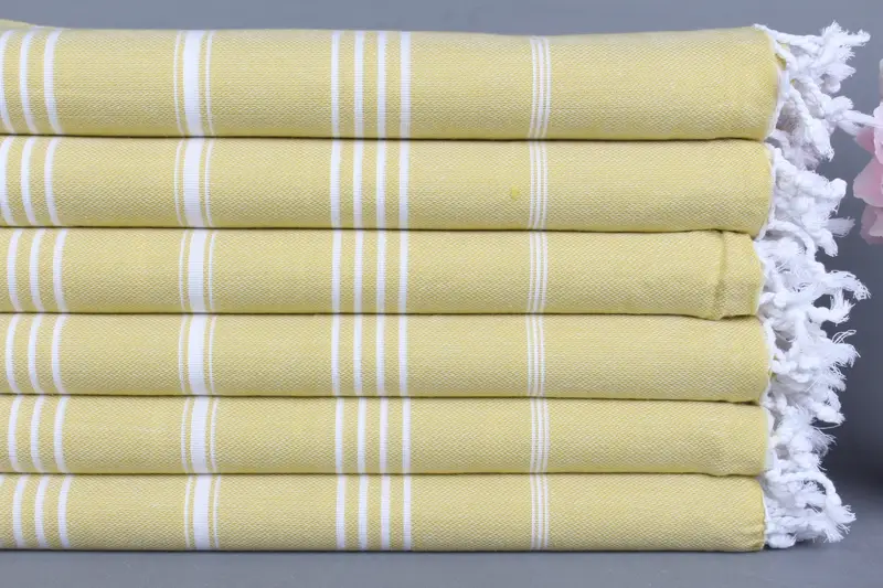 Türk Hamam Havlusu Monogramlı Limon Yeşili Çizgili, 40x71 İnç