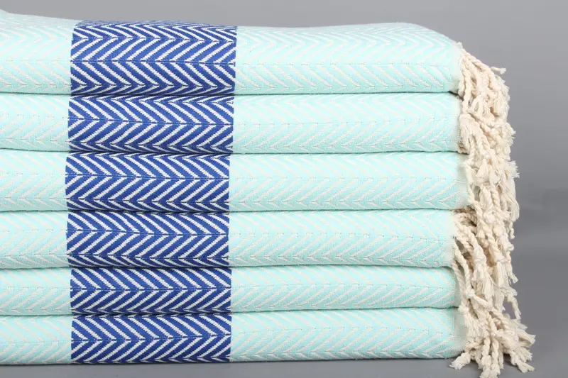 Bekarlığa Veda Hediyeleri Chevron Havlu Nane-Sax Mavi Organik Pamuk, 40x71 İnç