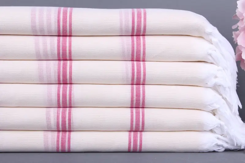 Organik Plaj Havlusu Kişiye Özel Fuşya Çizgili, 40x71 İnç