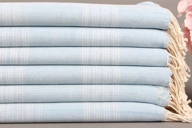 Organik Türk Plaj Havlusu Kişiye Özel, Bebek Mavisi, 38x71 İnç
