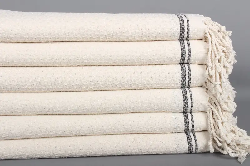 Çizgili Türk Plaj Havlusu Siyah Pamuk, 36x67 İnç