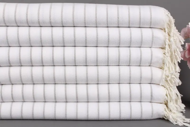Organik Pamuk Türk Havlusu Açık Gri Çizgili, 40x71 İnç