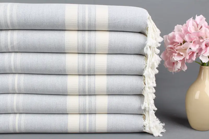 Düğün Hediyesi Organik Pamuk Havlu, Açık Gri Peştemal, 38x60 İnç