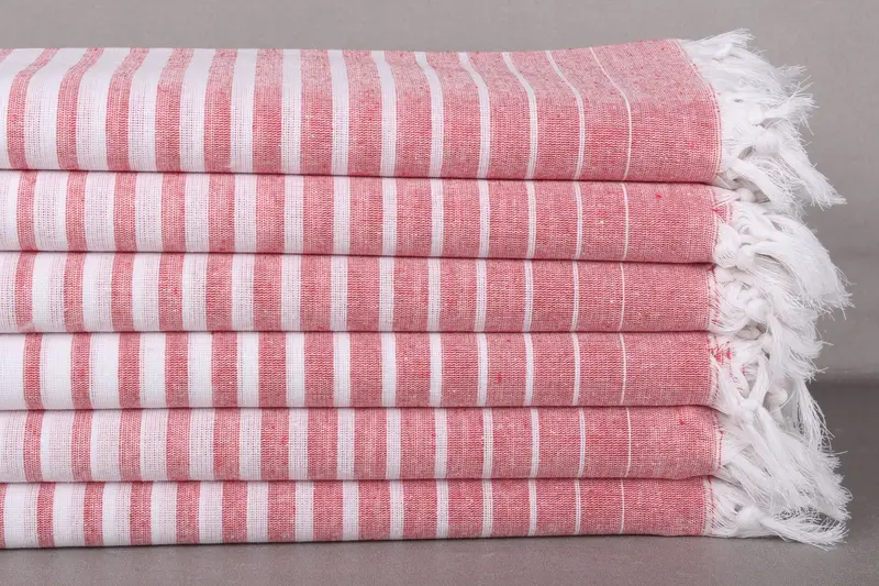 Banyo Havlusu Kırmızı Çizgili Pamuklu Türk Havlusu, 40x69 İnç