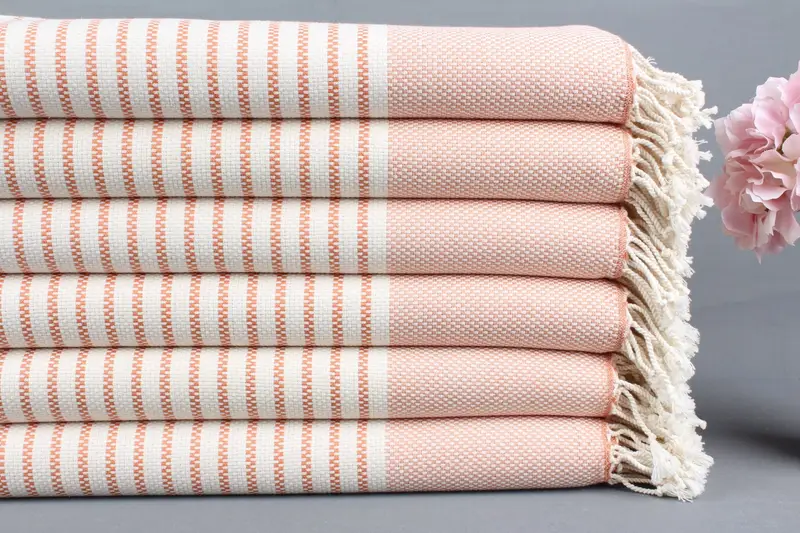 Organik Pamuk Türk Havlusu Bej Çizgili, 40x75 İnç