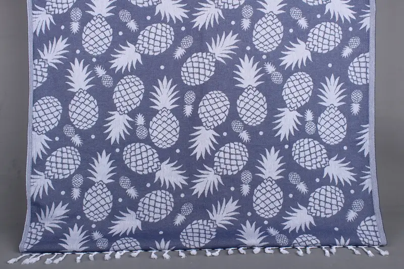 Ananas Tasarım Havlusu Lacivert Pamuklu Plaj Havlusu, 36x71 İnç