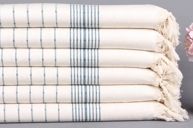 Petrol Mavi Çizgili Türk Havlusu Plaj, 40x71 İnç