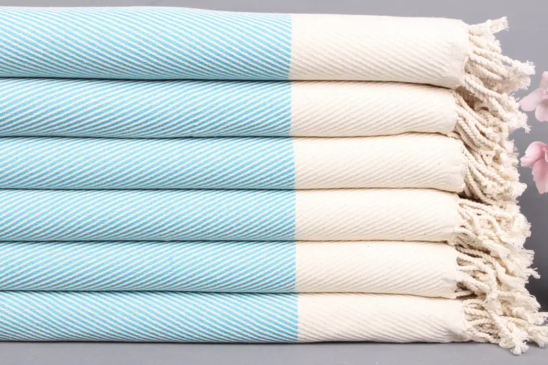 Organik Pamuk Türk Havlusu Turkuaz Çizgili, 40x71 İnç