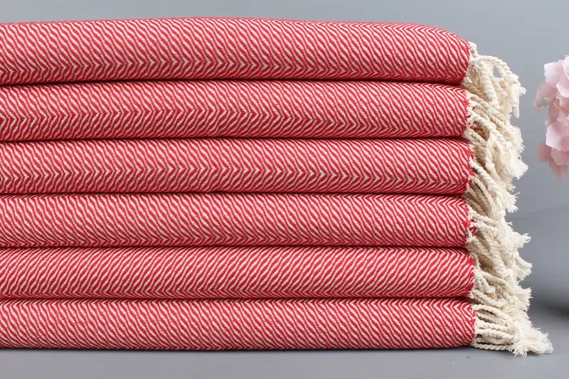 Türk El Havlusu Organik Pamuk Kırmızı Chevron, 20x40 İnç