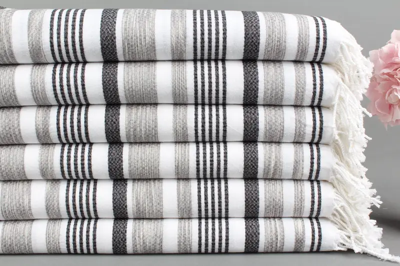 Türk Hamam Havlusu Siyah-Gri Peştemal Çizgili, 38x71 İnç