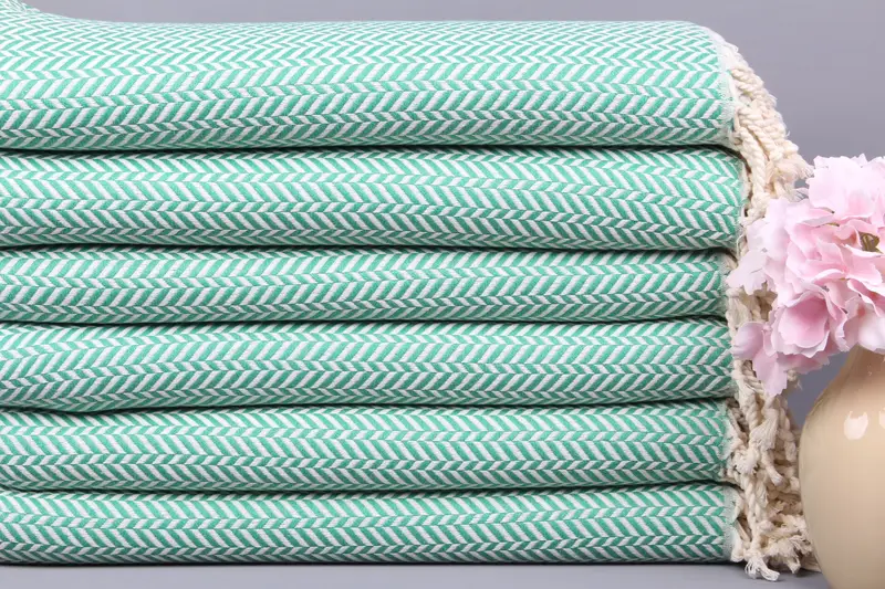 Türk Plaj Havlusu Kişiye Özel Organik Pamuk, Yeşil, 40x71 İnç