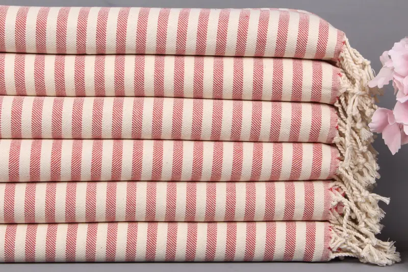 Askılı Mutfak Havlusu Organik Pamuk Kırmızı Bej, 24x40 İnç