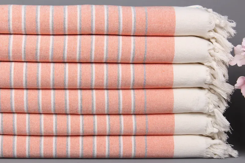 Monogramlı Türk El Havlusu Turuncu Çizgili, Bej, 18x36 İnç