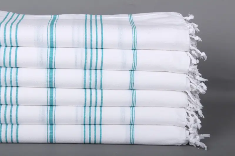 Çizgili Havlu Monogram Plaj Havlusu Petrol Mavisi Pamuk 40x71 İnç