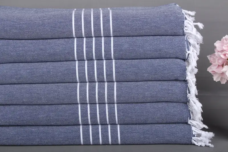 Kişiye Özel Türk Plaj Havlusu Lacivert Pamuk, Çizgili, 40x71 İnç