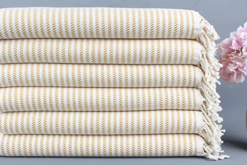 Kişiye Özel Türk Havlusu, Hardal Puantiyeli, Bej, 40x71 İnç