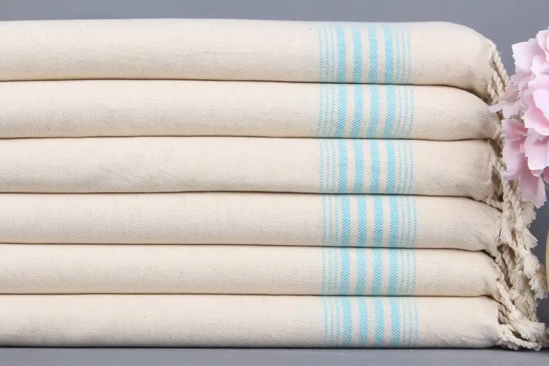 Türk El Havlusu Organik Pamuk Turkuaz Çizgili, 20x36 İnç