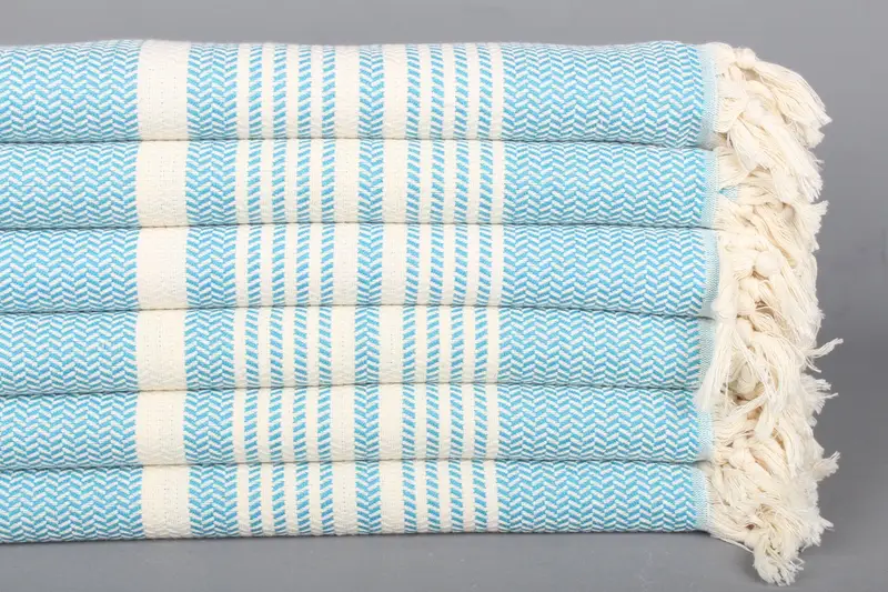 Kişiye Özel Çizgili Turkuaz Pamuk Havlu, Plaj Havlusu, 40x71 İnç