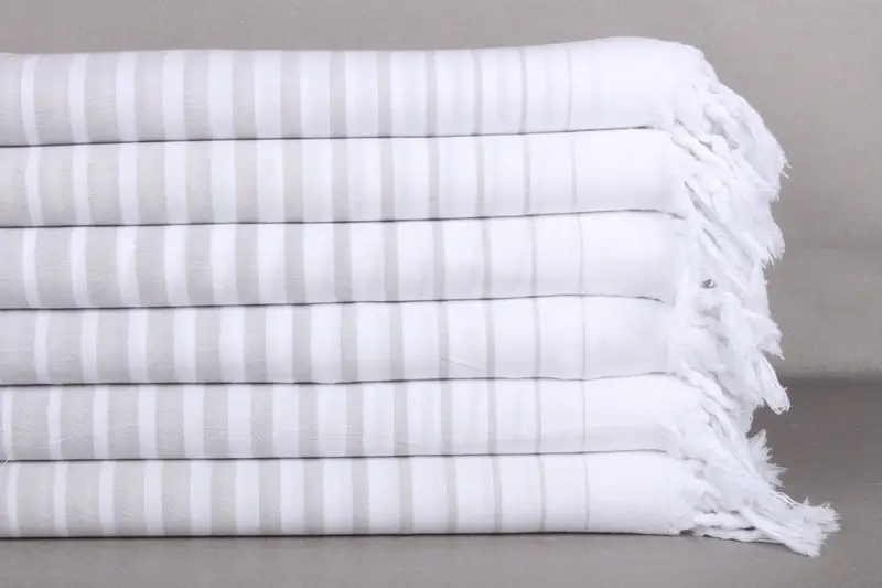 Düğün Hediyesi Havlu Çizgili Açık Gri Pamuk 36x67 İnç
