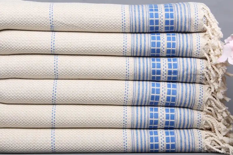 Kişiye Özel Plaj Havlusu Türk Pamuk Mavi Bej, 38x65 İnç