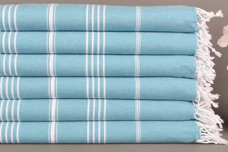 İşlemeli Plaj Havlusu Petrol Mavisi Çizgili, 40x71 İnç