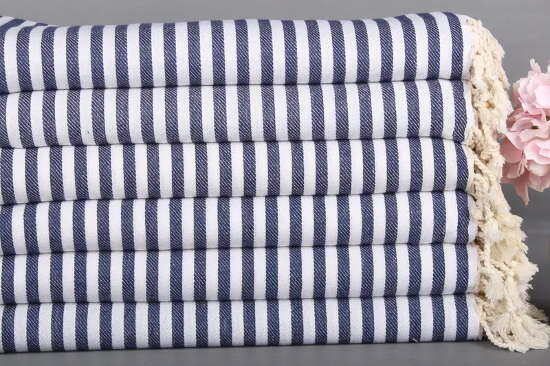 Lacivert Pamuk Havlu Monogramlı Plaj Havlusu Türk, 40x71 İnç