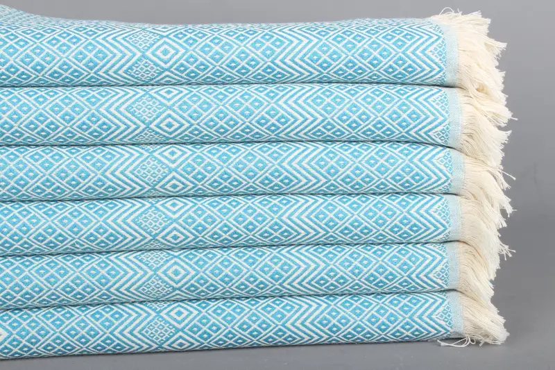 Türk Plaj Havlusu Monogram Mavi Pamuk, 40x71 İnç