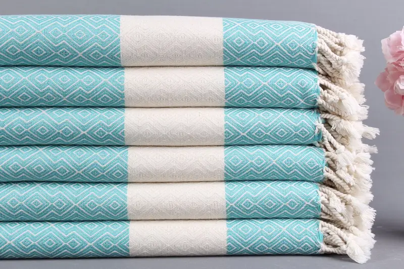 Türk Plaj Havlusu Organik Pamuk Turkuaz, 38x67 İnç