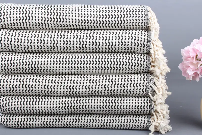 Plaj Havlusu Organik Pamuk Monogramlı, Siyah ve Bej, 40x71 İnç