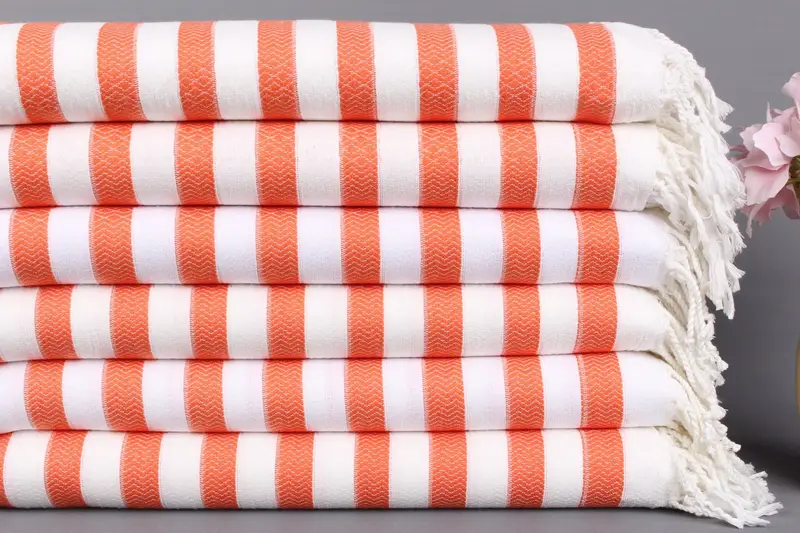 Türk Plaj Havlusu Organik Pamuk Turuncu Çizgili, 36x71 İnç