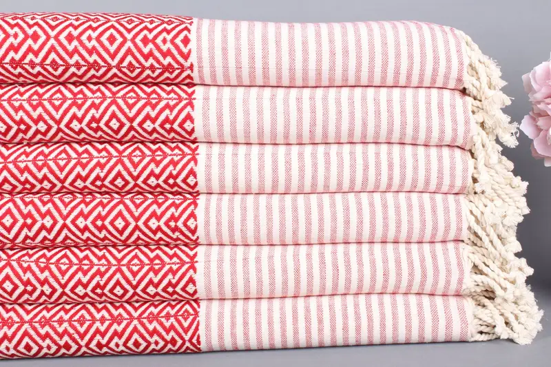 Organik Pamuk Kırmızı Peştemal Pırlanta Havlu, 38x75 İnç
