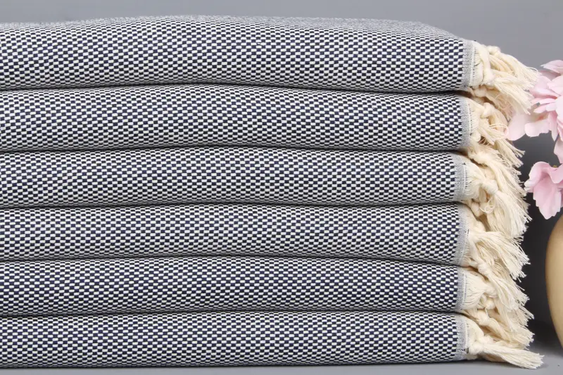 Kişiye Özel Lacivert Puantiyeli El Havlusu Türk Pamuğu, 18x40 İnç