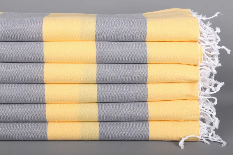Koyu Gri-Hardal Çizgili Pamuk Havlu, Kişiye Özel Türk Havlusu, 40x71 İnç