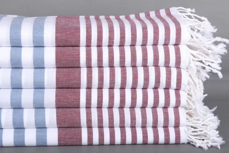 Çizgili Havlu Kişiye Özel Türk Pamuğu Denim Mavi-Bordo, 36x67 İnç